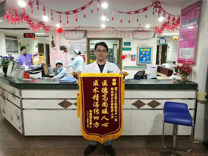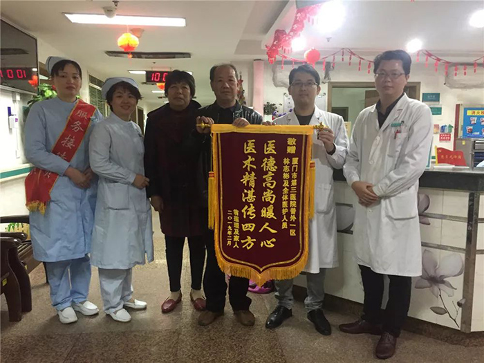 “医德高尚暖人心,医术精湛传四方。这面锦旗蕴含着我们一家人浓浓的谢意,请您们一定要收下。”2月22日,翁大妈及家人专程从翔安赶来伦理片 ,将锦旗送到普通外科一区主治医师林志彬等医护人员手中,以表对市三院医护人员的感激之情。