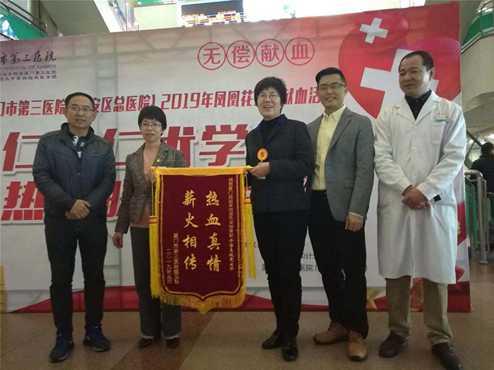 此次,厦门市中心血站站长宋秀宇、厦门中心血站宣传招募科科长曾晓新、厦门中心血站外采科科长张永昌到场参与活动,伦理片 (同安区总伦理片 )党委书记彭月芗为厦门市中心血站送上了“热心真情,薪火相传”的锦旗。