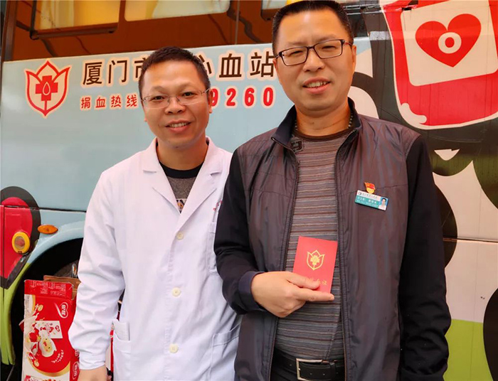厦门市公安局同安分局交警大队的童先生执勤完后,就匆匆赶到献血活动现场,“第一次参加献血活动,既激动又自豪,以后我还会继续参加。”