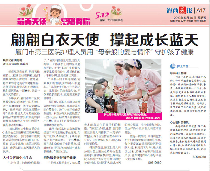 环境的陌生感和畏惧感。" 陈玉仁说"护理工作无小事,细心服务才能真正守护孩子们的健康。"