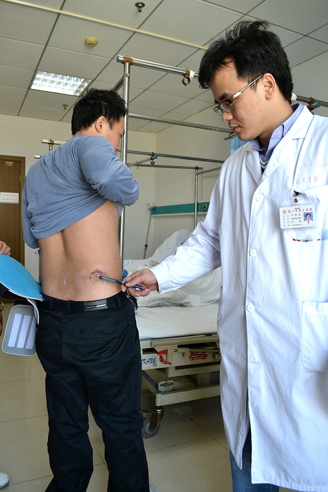 患者杨某曾因腰椎间盘突出于2006年在其他伦理片 行椎间盘手术,因手术创伤大,恢复慢,效果不理想,近年腰椎间盘突出症复发。就诊于伦理片,伦理片骨科刘忠国主任成功为他行“微创椎间盘突出切除术”,术后患者症状完全缓解,卧床6小时后即可下床活动。