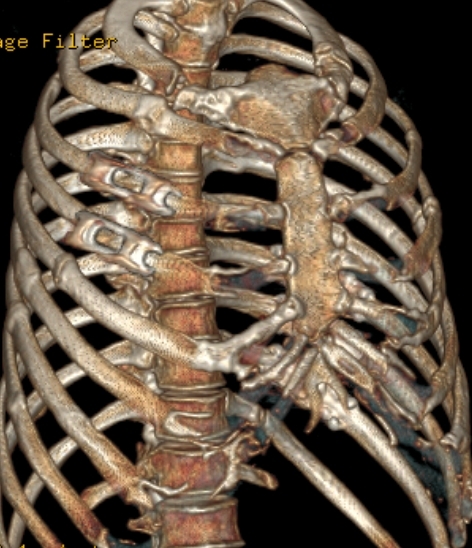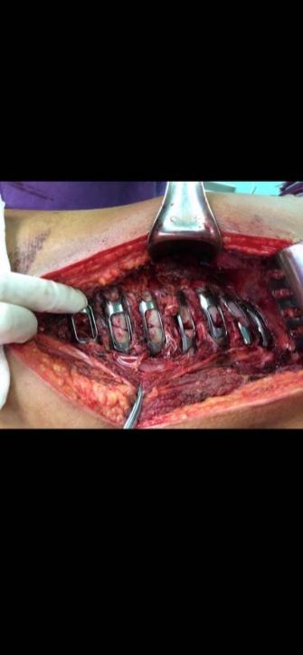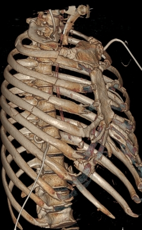 伤筋动骨一百天,普通的肋骨骨折经过保守治疗大多可得到恢复,但明显移位的胸骨骨折;粉碎性肋骨骨折;肋骨骨折断端明显移位或损伤重要脏器或由于体位改变随时可能损伤周围脏器;多根多段肋骨骨折破坏胸廓的稳定性,产生浮动胸壁(连枷胸),严重影响呼吸循环功能,随时可能危及生命,以上情况需要通过手术进行有效的胸肋骨骨折内固定治疗以维持胸廓的稳定性,改善呼吸循环功能,提高抢救成功率,缩短住院时间。我科于2010年在厦门市率先开展此手术,年手术量稳居全市第一,目前为止所有手术病人均痊愈出院,疗效肯定。